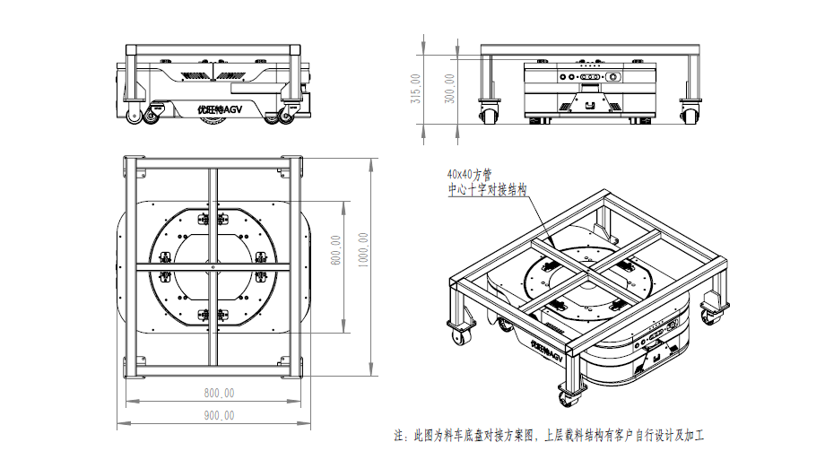 采用双轮差速驱动,速度可调,速度(0-60m/min)