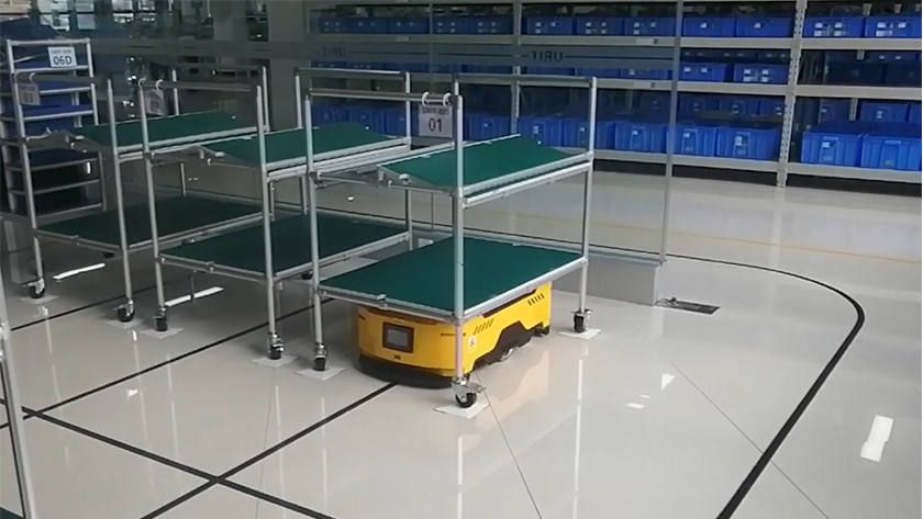 应用于广东某电子厂车间,解决仓库胶框发料到车间生产的运输过程,增加了生产效率