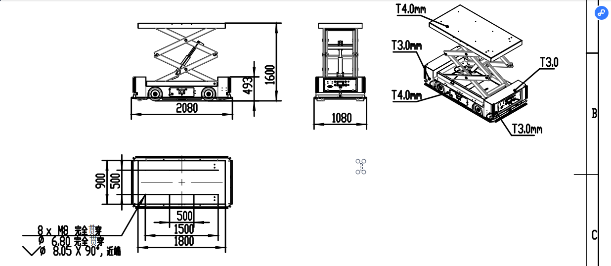 | 转弯半径 | 1500 | mm | 360°回转 |
