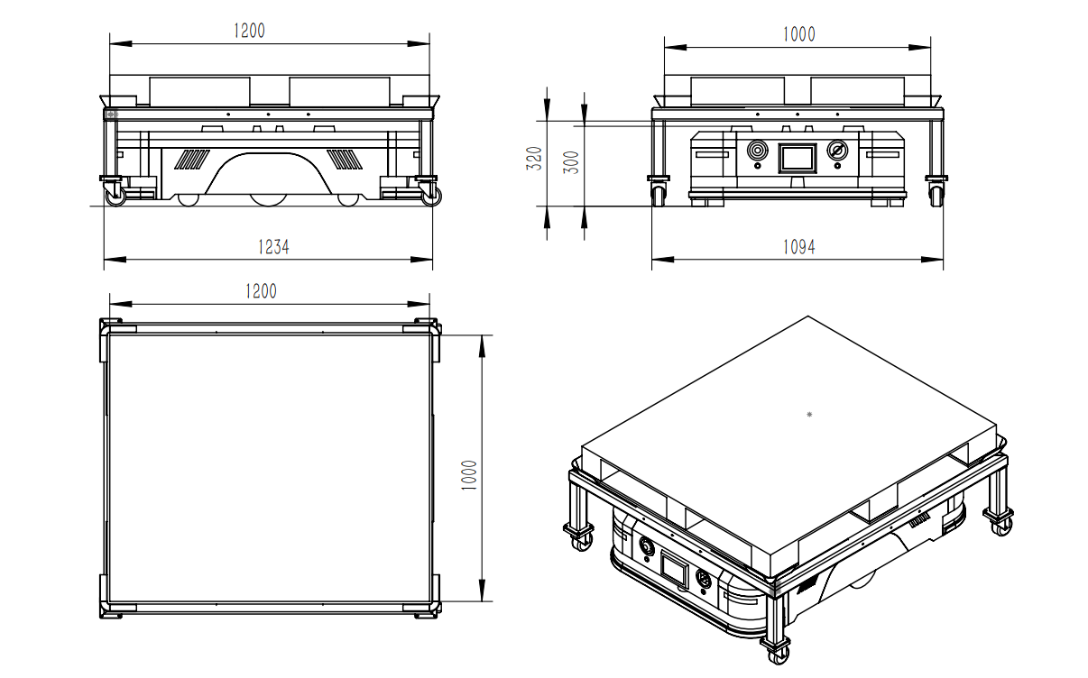 采用双轮差速驱动,速度可调,速度(0-60m/min)。